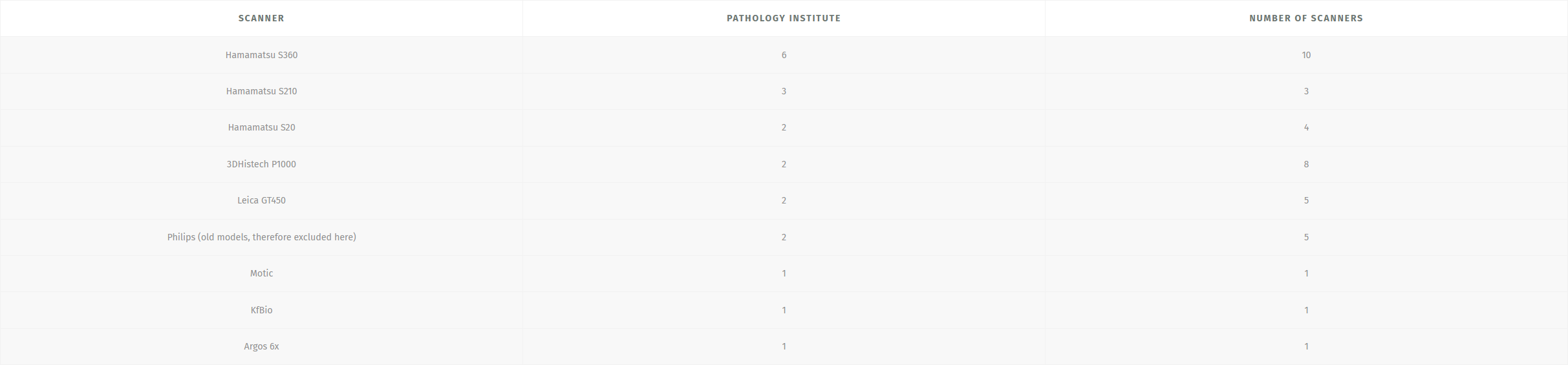 The goal was to test as many relevant scanners as possible for the everyday routine of pathology labs using standardized slides. To do this, we visited several institutes in Germany and spoke with pathologists and medical technical assistants about their experiences with the scanners they were using. The aim was to impartially and neutrally assess the quality and speed of the scanners. Some of the comparisons of default settings between scanners may not have been perfect, so the comparison may not always be entirely precise or fair. Therefore, we recommend conducting your own tests before purchasing a system. Although we conducted the tests in collaboration with the laboratory teams to the best of our knowledge, we exclude any guarantee or liability for this article, which is a snapshot of the market.